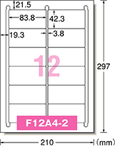 - ●特長2 大きな表示用の4面、宛名などの表示に向いた10面・12面、小さめの表示に向いた21面の4サイズに100シート入り製品をラインアップ。